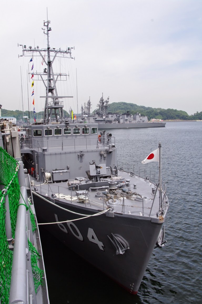 「うらが」の横に掃海艇「えのしま」が接舷しているのはなんでだろうと思い、近くに掃海隊群の補給幕僚がいたので尋ねると、掃海母艦としての役割を示すために持ってきたのだとか。